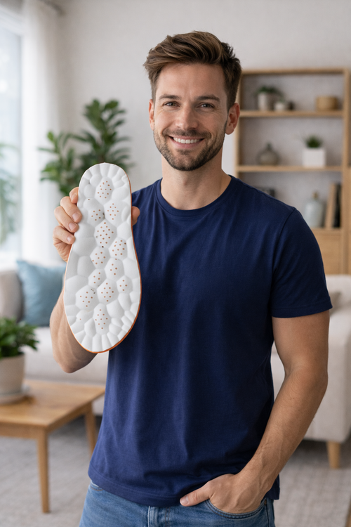 Our tailored massage insoles gently hugs your midfoot with every step, distributing pressure evenly to reduce strain and fatigue.